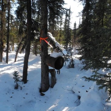 Nous avons bientôt la confirmation qu’il s’agit bien d’une ancienne ligne de trappeur lorsque, au pied d’un arbre dont l’écorce a été marquée, je mets au jour un vieux piège rouillé ! L’émotion est forte quand je retrouve ce vestige d’un demi-siècle au beau milieu de nulle part. Je me sens archéologue de l’arctique.