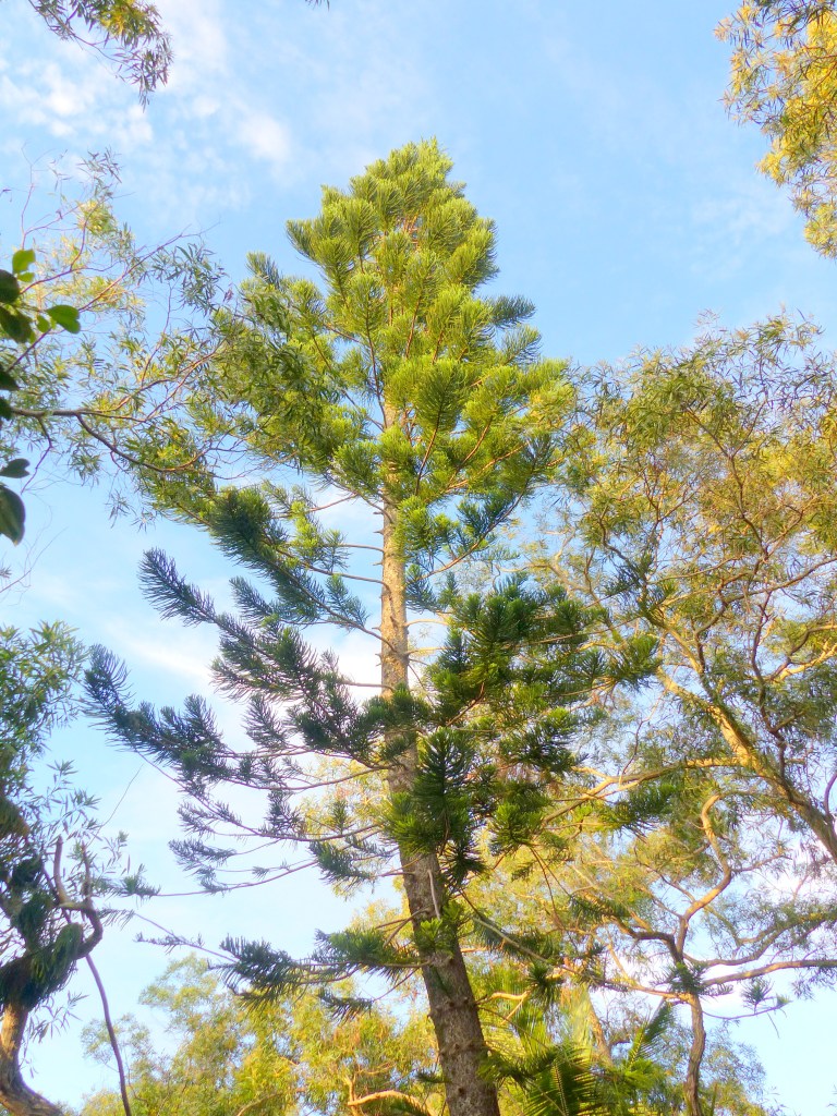 Le pin colonnaire est planté autour des habitations des hommes de haut rang, sur des lieux sacrés. Il marque les interdits et reste le signe d’un lieu d’habitation ancien dans le paysage kanak.