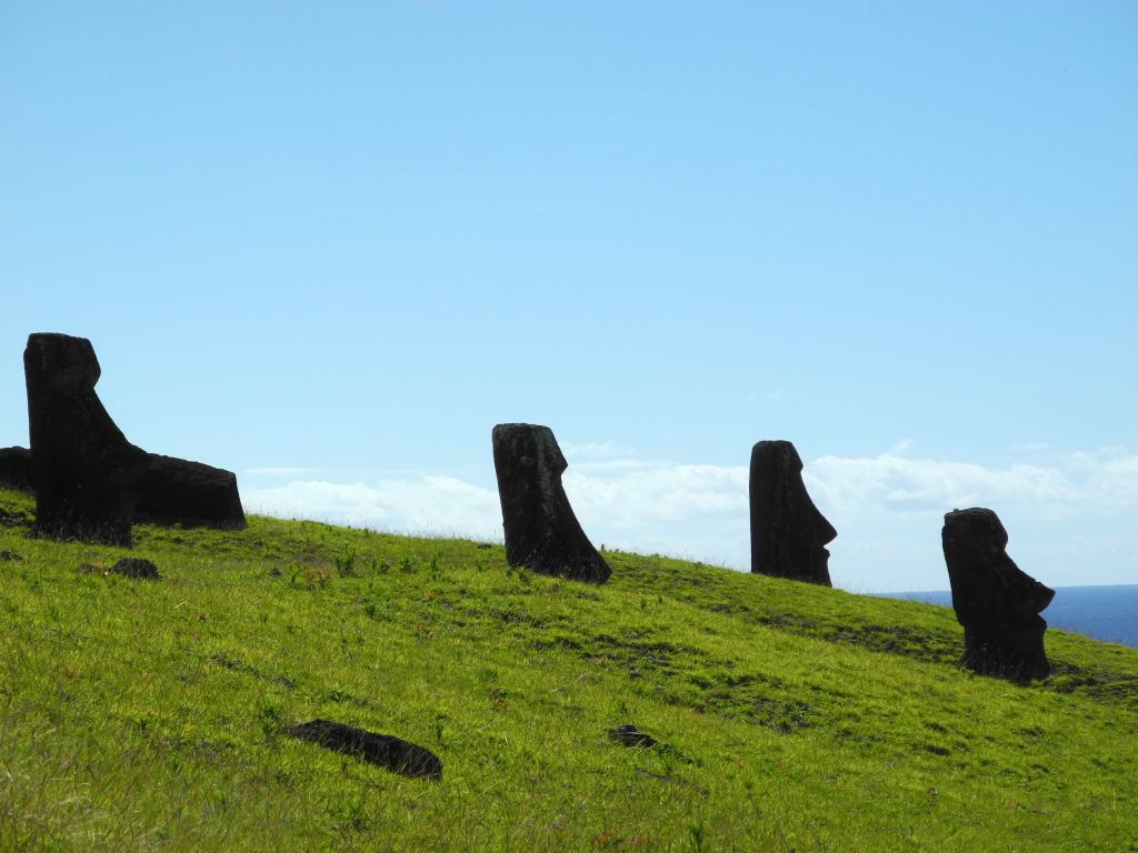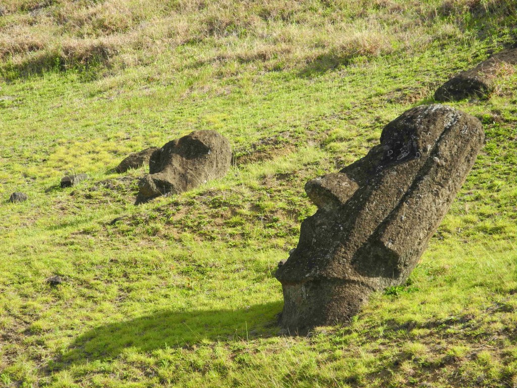 Parmi les 600 moaï, plus de la moitié sont encore dans la carrière où on les a taillés, sur les flancs du volcan Rano Raraku.